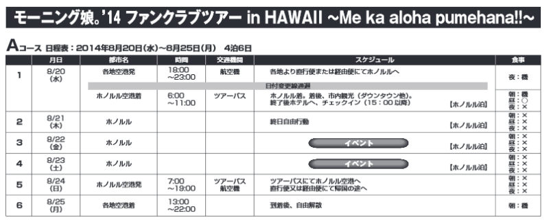 モーニング娘。’14ファンクラブツアー in HAWAII 企画の ハワイ・オプショナルツアー